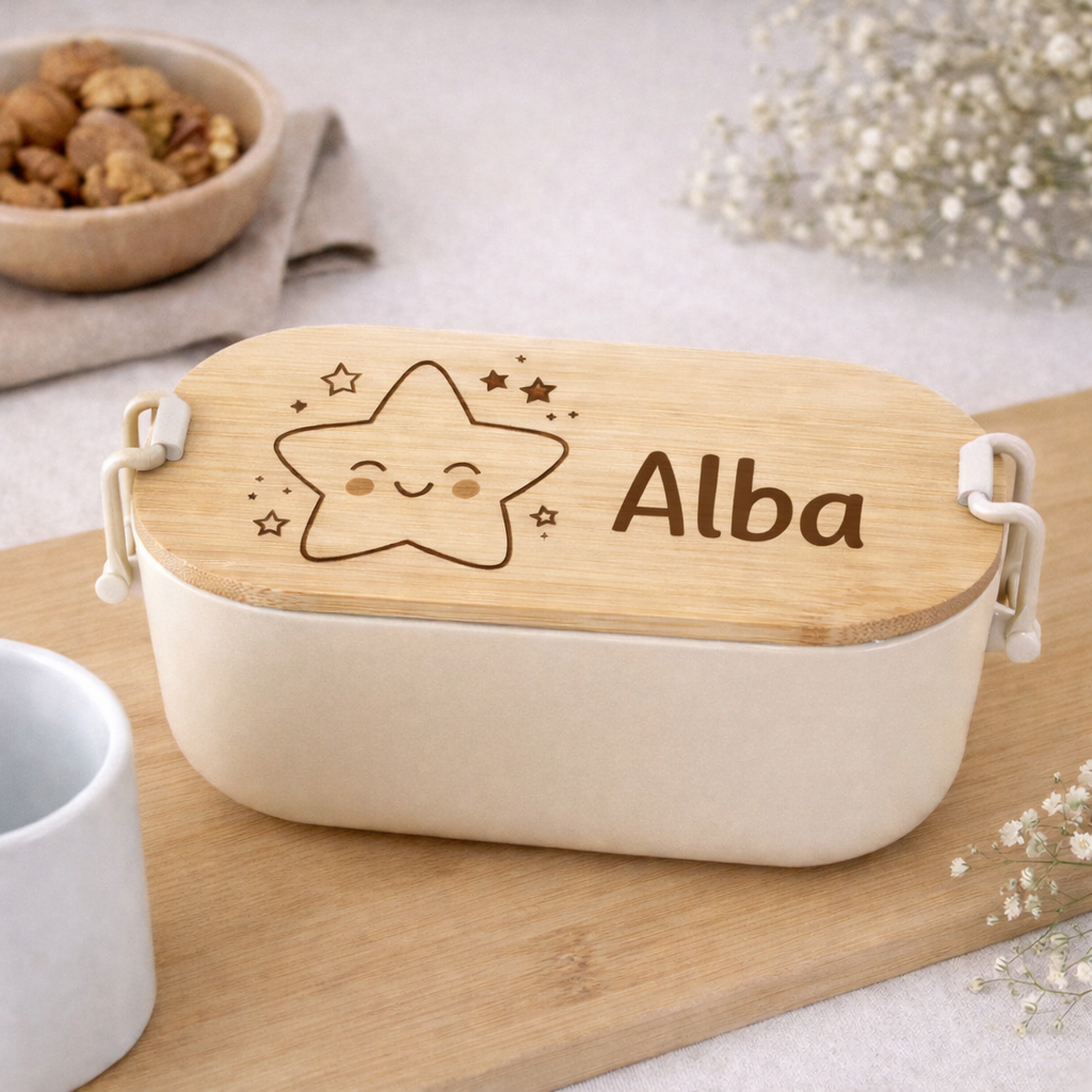 Personalización Exclusiva: Grabamos mediante láser el nombre y tu diseño favorito (¡superhéroes, flores, iconos y más!) directamente sobre la tapa de madera. Al ser un grabado permanente, el diseño no se borra ni se desgasta con el uso diario.